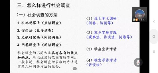 讲座结束后,马燕萍老师从社会实践对大学生成长的意义角度对同学们进行了思想教育,王国定老师从讲座的内容角度对本次活动给予了高度评价,严君老师肯定了社会调查的重要性,张鸿琴老师用自己在英国访学的经历给同学们现身说法,闫程莉老师非常赞同讲座倡导的“一般号召与个别指导相结合”的工作思路。