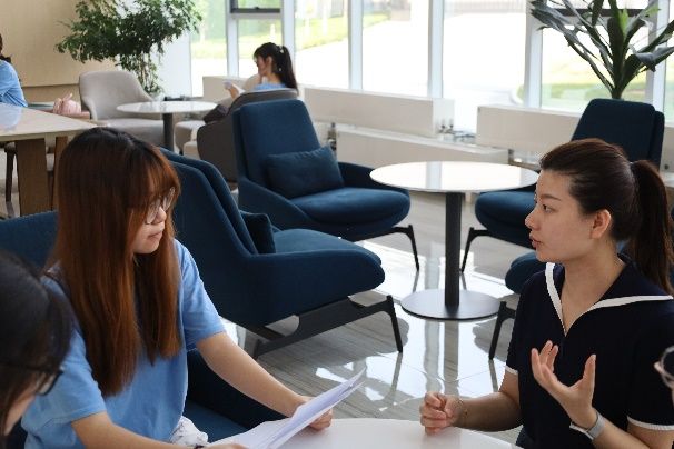 随后,实践队员对智创城负责人进行了采访。通过交流,队员们了解到,乡村e镇给当地带来了诸多积极变化。这里创造了大量就业机会,吸引大量青年涌入,为乡村发展注入新鲜血液。同时,电商在当地普及程度很高,乡村e镇会为本土企业免费提供从选品-包装-宣传运营-直播推广一系列免费培训,成为推动乡村经济的重要力量。