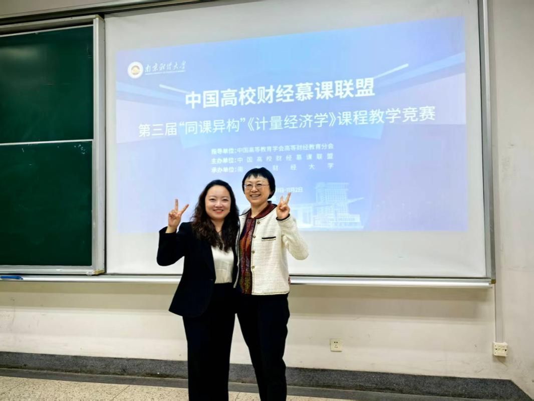 11月2日,由中国高校财经慕课联盟主办的第三届“同课异构”教学竞赛《计量经济学》课程决赛在南京财经大学落下帷幕。由我院潘美玲副教授带队,张鸿琴老师作为主讲教师代表的数量经济学教学团队,凭借其卓越的教学设计、深厚的专业素养和富有创新的教学实践,在来自中央财经大学、上海财经大学、对外经济贸易大学、天津财经大学、江西财经大学、中南财经政法大学等25所高校的激烈竞争中脱颖而出,荣获一等奖。