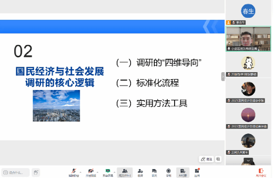 郝全青股长以小店区深厚的人文底蕴为切入点,围绕“没有调查就没有发言权,没有调查就没有决策权”的基本原则,系统阐述了实践调研的重要性、时代意义、主要目标和关键作用。并且聚焦国民经济与社会发展的核心逻辑,介绍了调研的“四维导向”、标准化流程和实用化工具,展示了调研从理论框架到实践应用的全过程,实现从学术认知到实践应用的有效衔接。