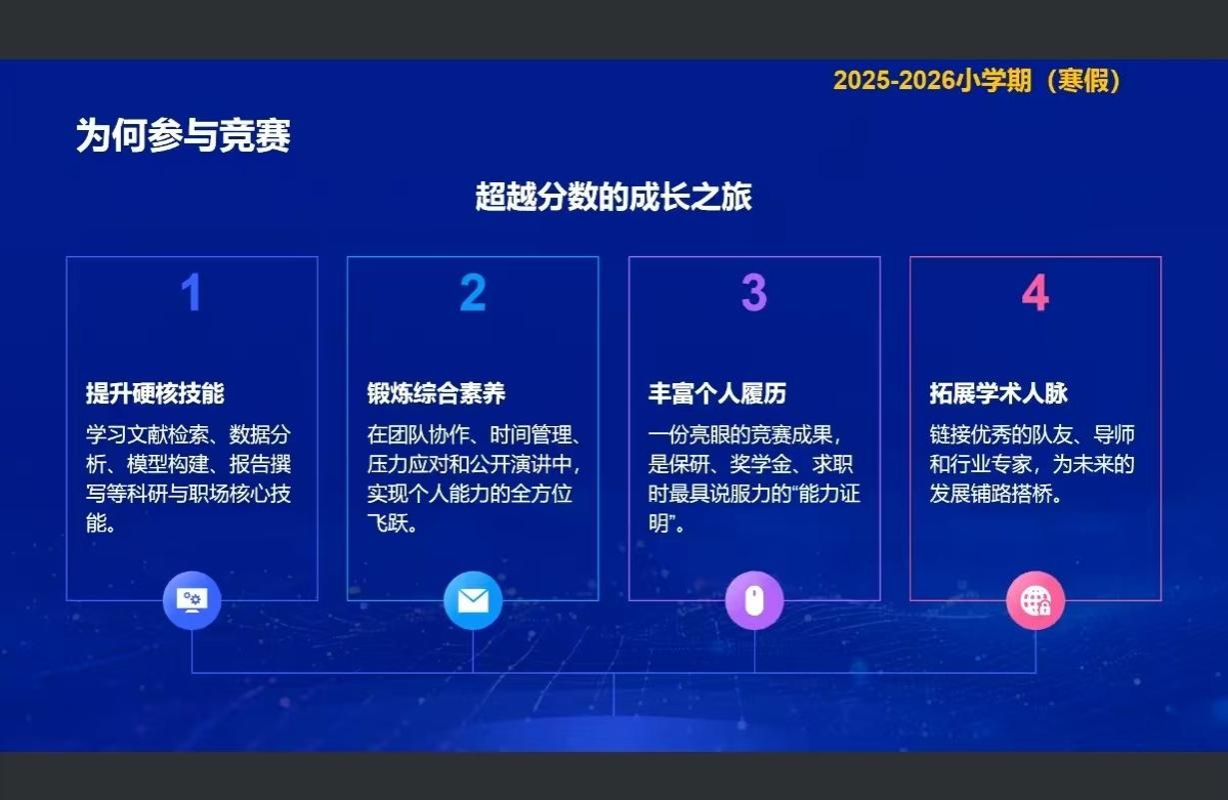 学院始终坚持以赛促学、以赛促教、以赛促创,将学科竞赛作为培养创新型、应用型财税人才的重要抓手。寒假小学期系列宣讲活动不仅是一次竞赛知识的普及,更是一次学业规划与专业成长的助推。期待同学们积极参与,主动谋划,在竞赛实践中锤炼真本领,在团队协作中拓展新视野,为个人发展与学院荣誉注入崭新动能。