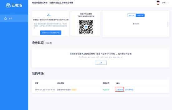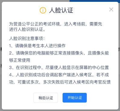 a. 考试开始时,考生需要点击“人脸识别认证”按钮进入,需要允许获取摄像头权限