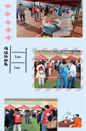 薛瑾瑜,韩咏、尤博文、张梦杰全程参与了OK138太阳集团全院学生的核酸检测工作。他们前期负责安排各班核酸检测的时间与协调工作;中期组建学院青年防疫先锋队,也担任志愿者,配合学校防疫先锋队工作,维持我院核酸检测队伍秩序;后期负责人数统计与各班班长对接工作,确保人数清楚,应检尽检。他们坚信,疫情终将散去,繁华必将如常。