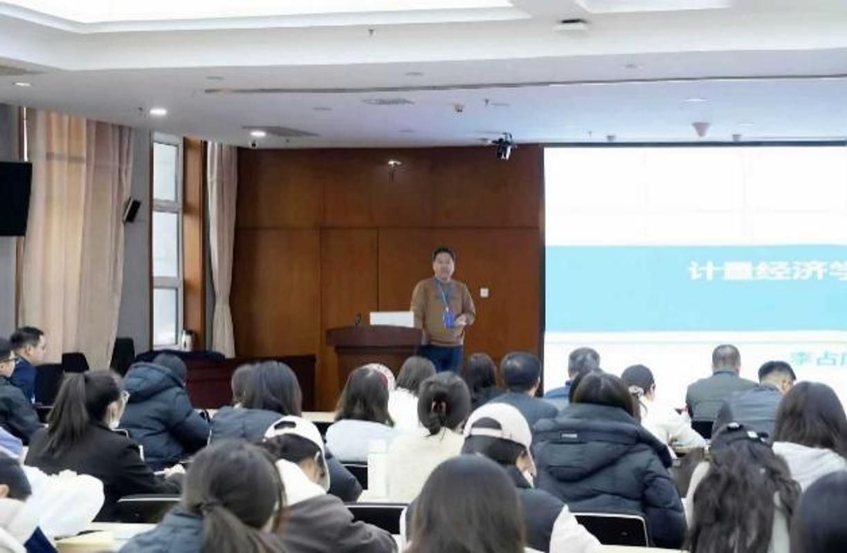 在数量经济领域主题报告环节,中南财经政法大学李占风教授作了题为《数字技术创新对企业绿色转型的影响研究—兼论计量经济学实证分析的规范性》的报告,天津财经大学白仲林教授作了题为《计量经济学的研究范式演化及其应用》的报告,华侨大学赵昕东教授分享了题为《劳动保护提升了企业内劳动收入份额吗?—来自“中国企业—劳动力匹配调查(CEES)”的微观证据》报告。与会师生就工具变量使用、控制变量选择、稳健性检验规范、论文发表等问题与嘉宾进行了热烈讨论。