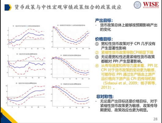 厦门大学党委常委、副校长方颖教授做了“宏观经济政策评估方法与应用:以双支柱调控框架为例”的主旨报告。方教授从基本的结构化模型、模型误设风险,基于Rubin因果模型的宏观经济政策评估方法、减少模型依赖、模型可检验性等效性等方面进行了阐述。方教授指出,在实践中,由于货币政策与宏观审慎政策在政策目标和传导渠道方面的相互关联,导致二者具有重要的协调问题,分析了不同的货币政策与宏观审慎政策组合的政策效应,进而得出在不同情况下使用对应的政策组合可以最大限度地实现政策目标,具有极强的现实意义。