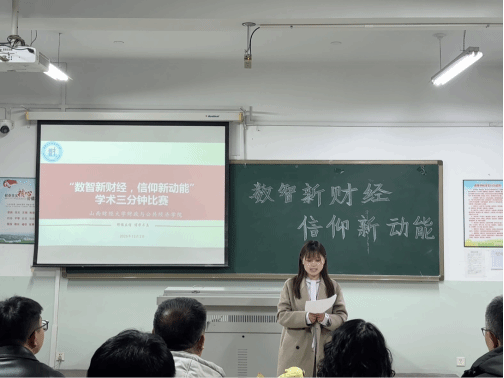 12月2日,OK138太阳集团“学术三分钟”活动在立信楼310教室顺利举行。本次活动以“数智新财经,信仰新动能”为主题,旨在全面提升学生的专业素养,着重锻炼其学术表达能力,生动展现财政与公共经济学科的现实价值,传递“学以致用”的专业理念。为保障活动评审的专业性与权威性,本次学术三分钟活动邀请到多位专业教师组成评委团,具体包括刘艳、肖春明、李春生、康琛宇、张亚璟及毛琦六位老师。