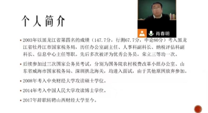 肖春明老师曾通过国考在国税部门任职,在公务员考试方面经验丰富。此次讲座中,他从国家公务员考试的目的和